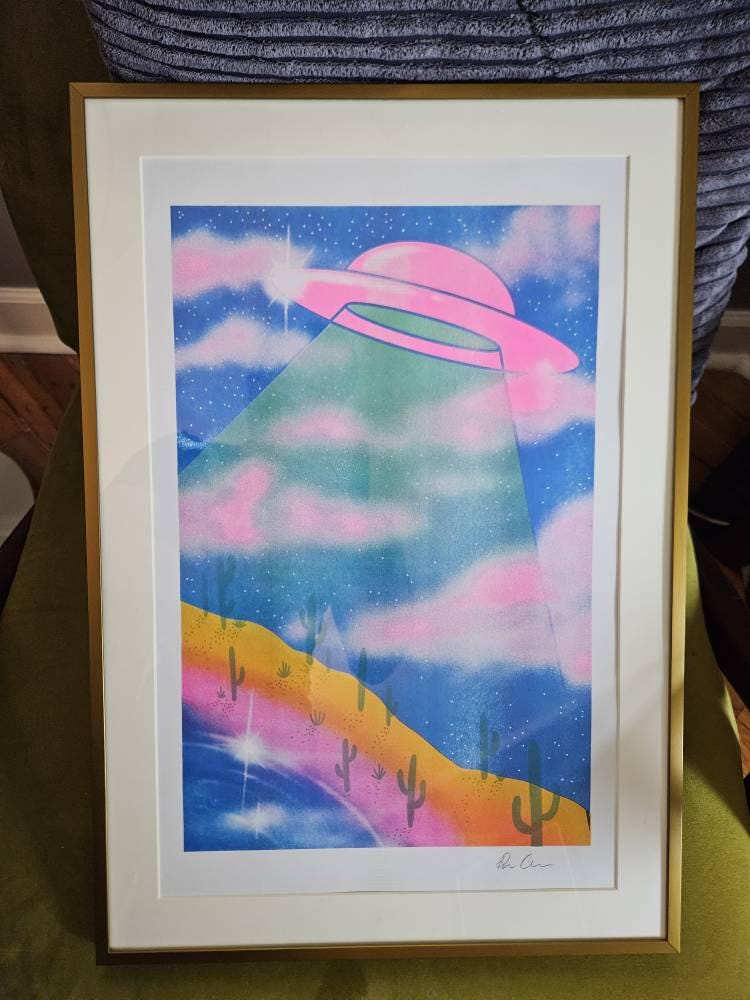 My brand new illustration is now available as a 4-color risograph print! Illustrated by me personally and also print by me on a Risograph with sunflower, seafoam, fluorescent pink, and blue.