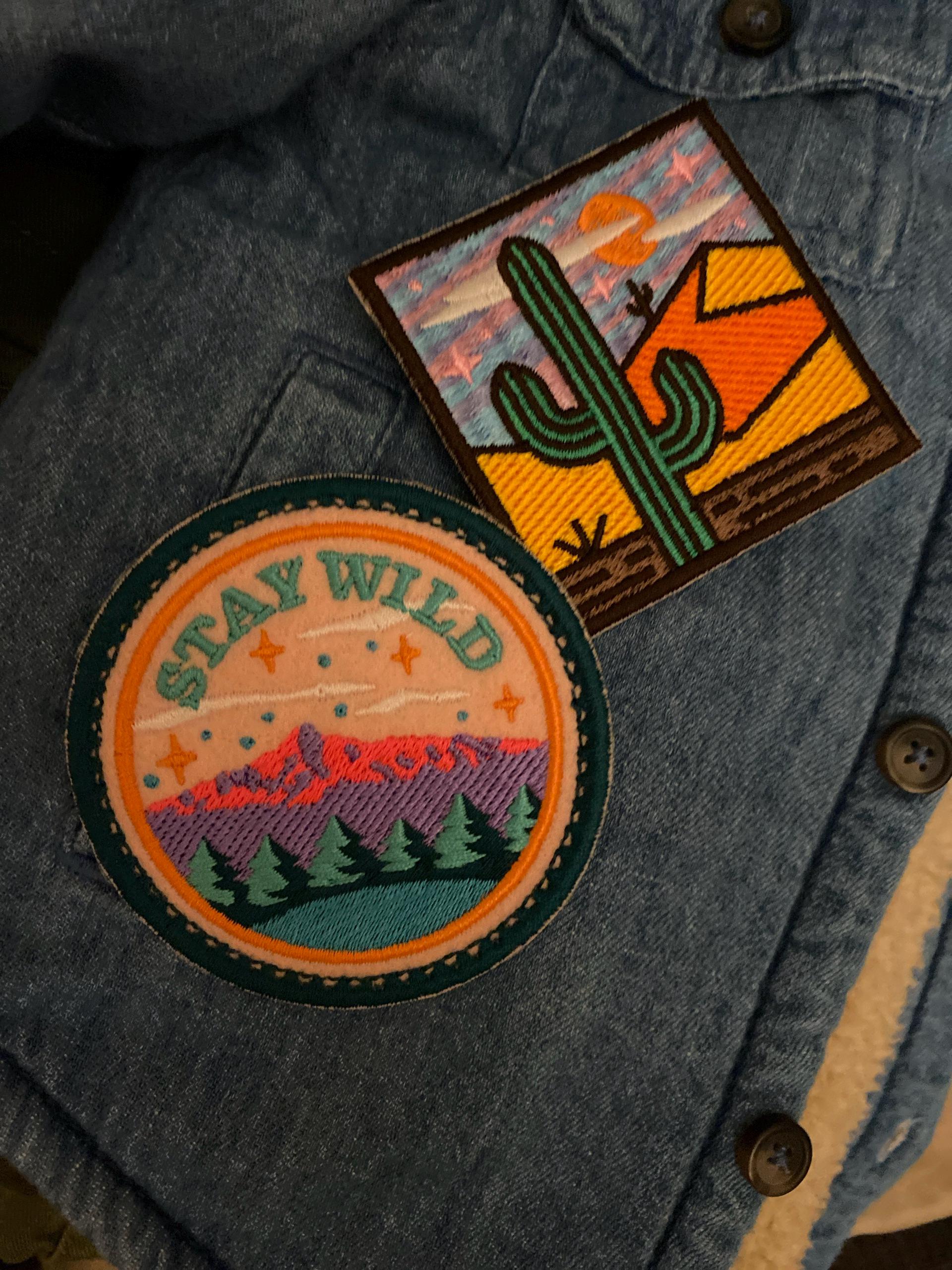 • Iron-on adhesive works great for placing a patch, but has a limited durability. We always recommend additionally sewing the patch for a long lasting finish.