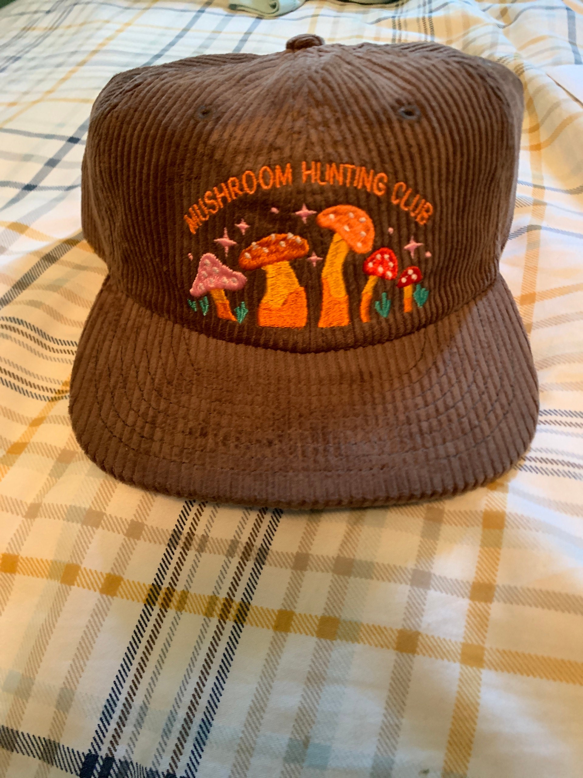 This super cute mushroom hat is perfect for the avid mushroom hunter. Embroidered directly onto a super soft corduroy hat, that's sure to become your new favorite.