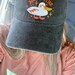 I LOVE this hat. The hat itself is very cozy and fits well. The artwork is exactly as pictured and looks so good on the light denim. Brooke is very communicative and helped me with an issue I had. She was super quick and helpful. Great shop and super cute stuffs.